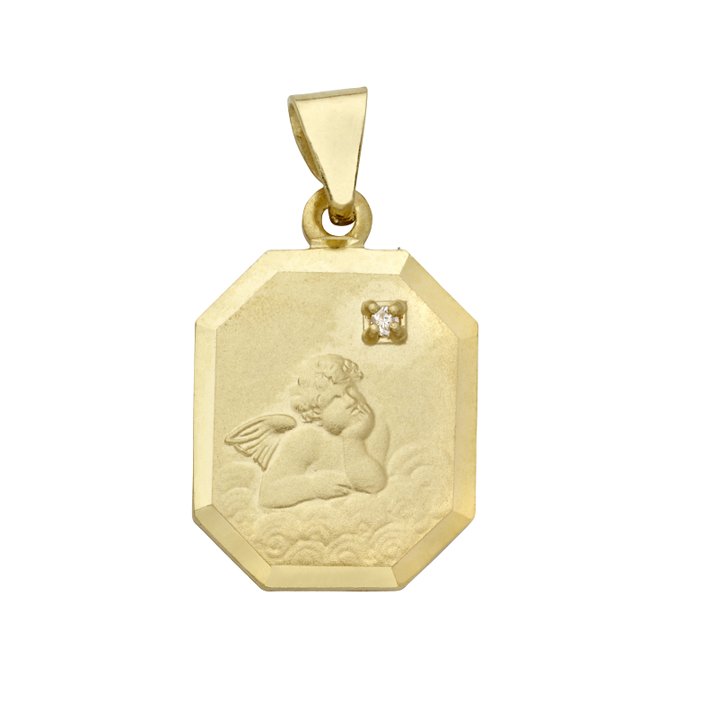EN23 SCHNEIDER BASICS Quadratischer Anhänger mit Engel Gelbgold